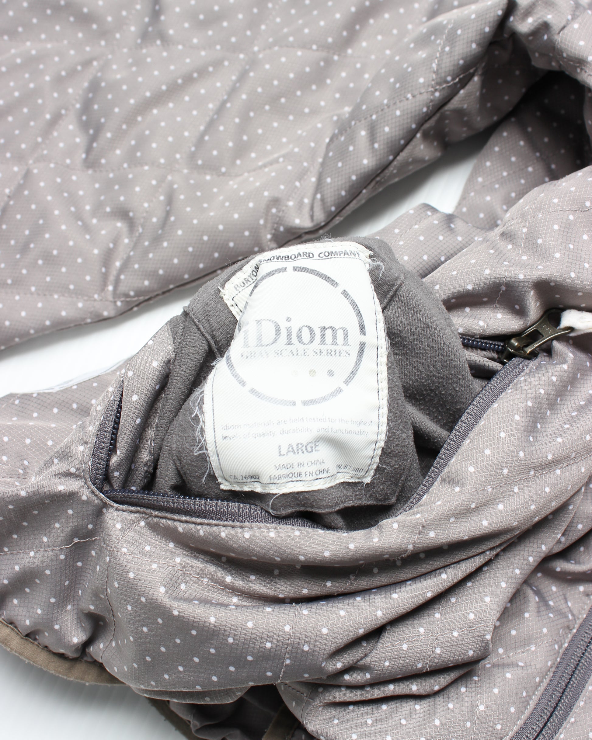 burton idiom, reversible but why would u wear the polka dots on the inside, small stain on the reverse near left hand pocket.